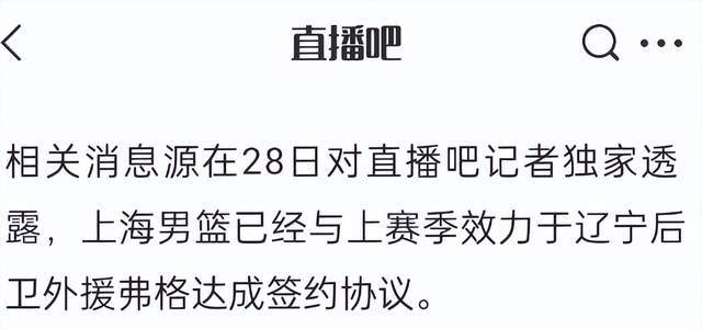 正式确定!弗格加盟上海男篮,携手洛夫顿,卢伟冲击总冠军